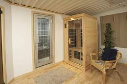 Данная модель двухместной инфракрасной сауны уместна как в спа-салоне, так и в квартире или доме. Она проста в использовании и подойдет к любому интерьеру.